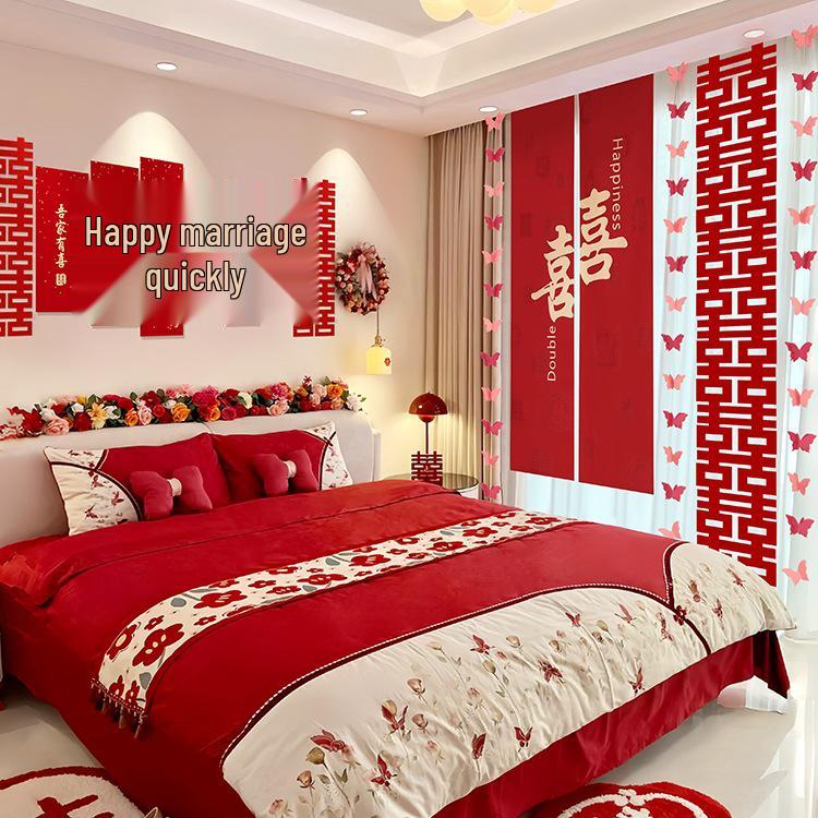 Wedding Decoration Set: Sofa Background, Bedroom Bedside, and Double Happiness Board for Groom's New House