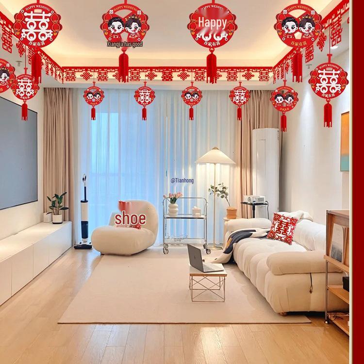 Double Happiness Wedding Room Decoration Set: Ceiling Hanging & Curtains