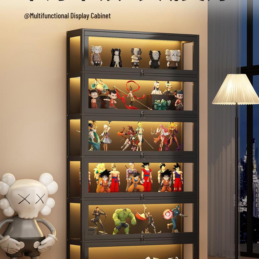 Acrylic Lockable Display Case with LED Lights for Figurines and Models, Dustproof Transparent Stand