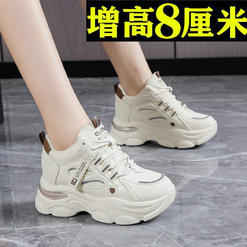 Inner Height-increasing Dad Shoes Women's 2025 Autumn and Winter New Height-increasing and Thin Single Shoes Sports Thick-soled Casual White Shoes
