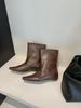 2025 Fashion Square Head One-pedal Slope Heel Short Tube Wide Boots Women's Solid Color Retro British Style Cowhide Fashion Boots