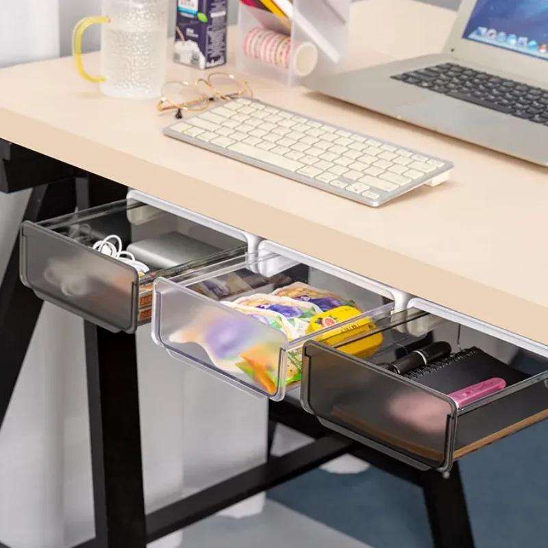 Clear Under Desk Hidden Drawer Office Storage Box Organizer Drawer Desk Supplies Holder Rack Memo Pen Stationery Storage Tray