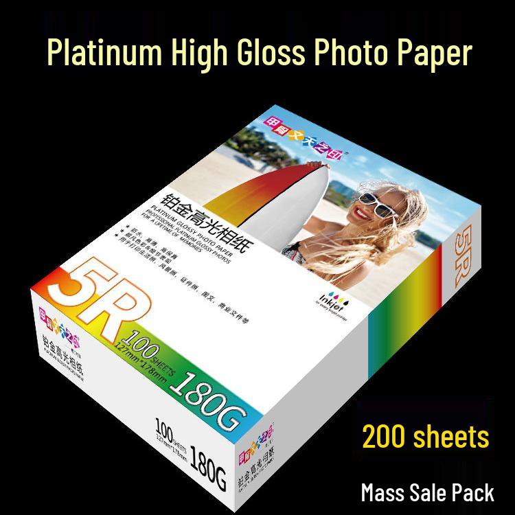 Platinum High Gloss 200g Waterproof Photo Paper, 5x7 Inch, A5, A3, for Color Printers.
