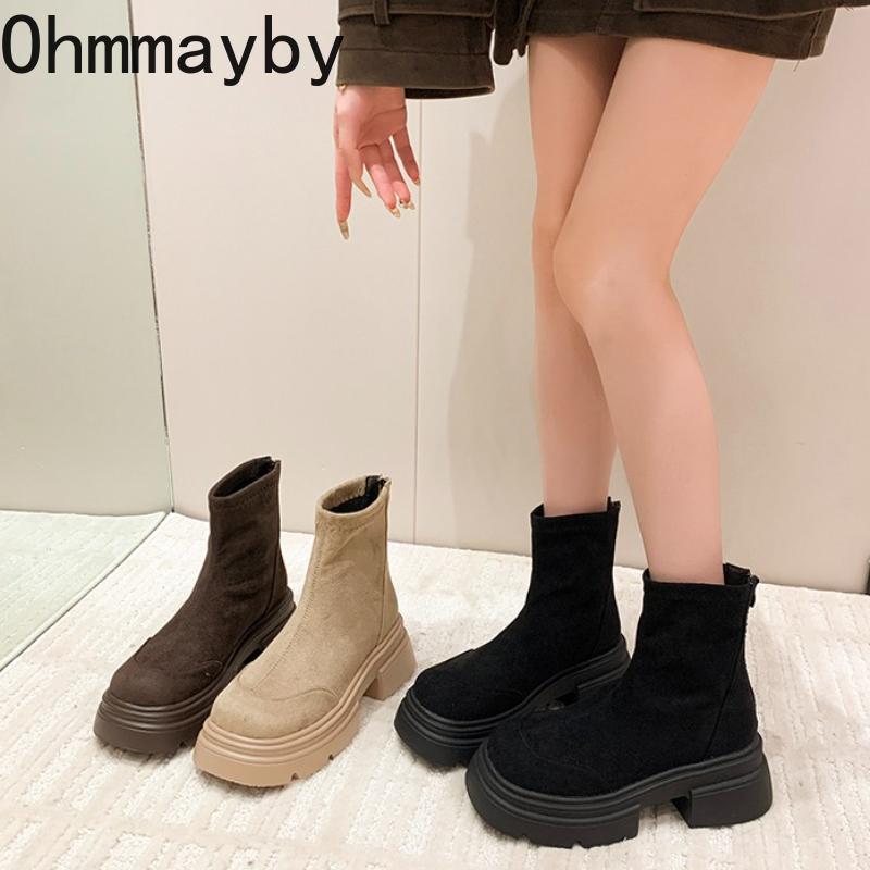 Vintage Platform Thick Sole Woman Ankle Boots Comfort Short Plush Shoes Autumn Winter Slim Height Increase Short Botas