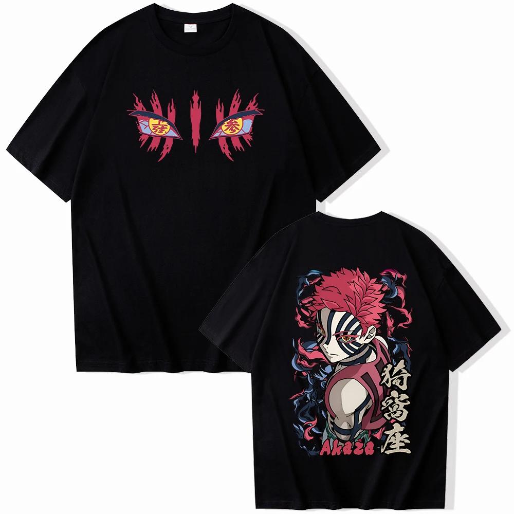 Summer Men's Japanese Demon Slayer Akaza Character Anime Printed Round-neck Short-sleeved T-shirt, 100% Pure Cotton 2D Clothing