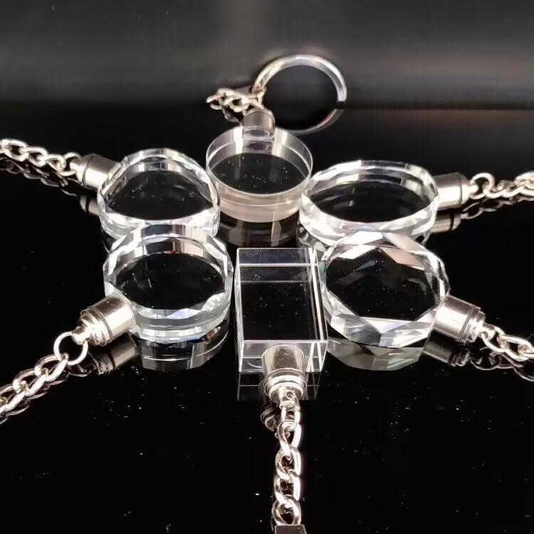 Crystal Keychain with Customizable Inner Carving - White Blank for Logo or Image, Small Gift Pendant