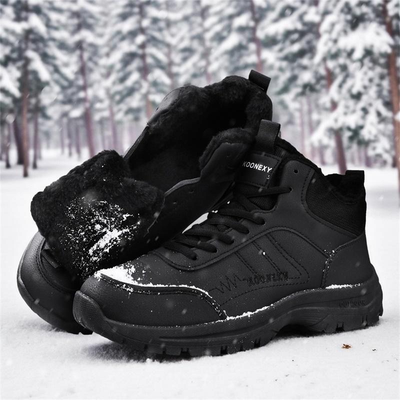 Men's Fleece Warm Men Snow Boots and Comfortable Soft Anti Slip Hiking Shoes Men's Versatile Trendy Casual Sports Shoes