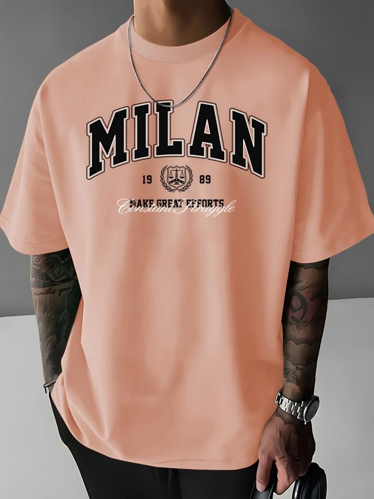 Fashionable Street Men's Letter Printed Comfortable Breathable Round Neck T-shirt Summer Outdoor Urban High Street Top