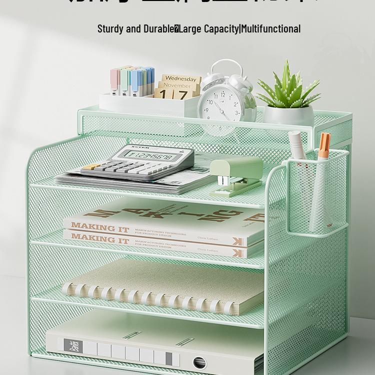 Large Capacity Metal Desktop File Organizer - A4 Paper Storage Rack & Office Desk Bookshelf