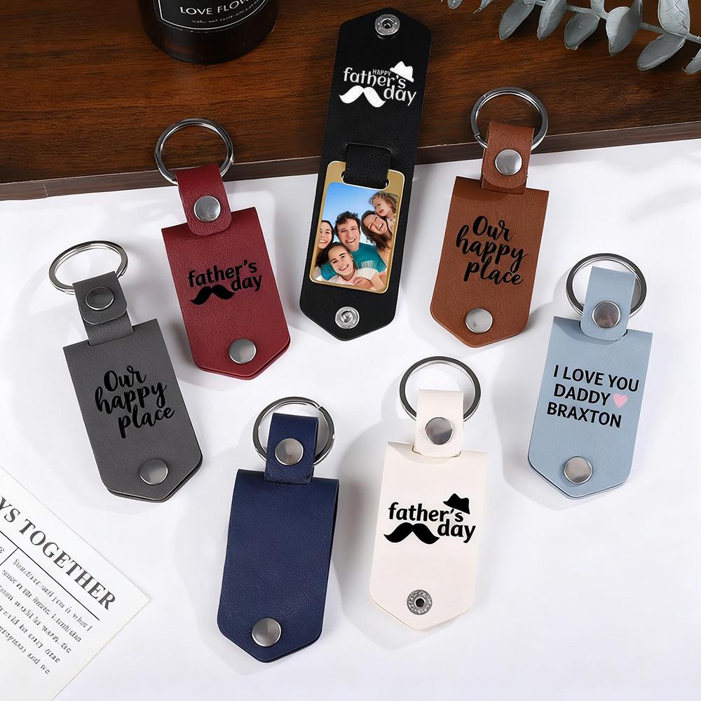 Vintage Leather Keychain with Stainless Steel Pendant