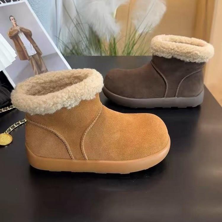 Version~ Retro Round Head Ugly Cute Short Boots Women's Velvet Low-top Snow Boots Warm Big Cotton Shoes Thick-soled Fluffy Boots