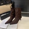 Pointed Short Boots Women's Thin Heel 2025 Sense New Autumn and Winter High Heel Medium Tube Thin Boots Women