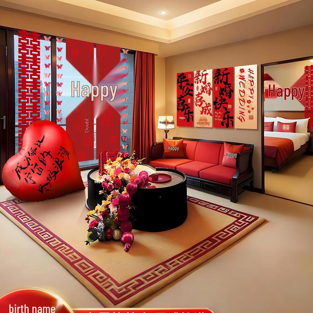 Bridal Room Wedding Decor Set with Double Happiness Backdrop, Tassels & Curtains