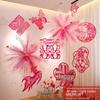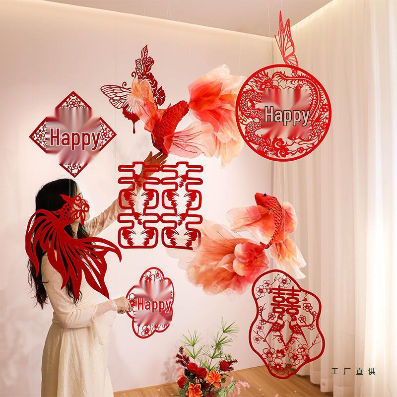 Double Happiness Wedding Room Decor Set: Non-Woven Fabric Papercut for Bride and Groom's Bedroom or Hotel.