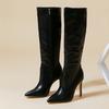 Fashion 2025 NEW Spring Red Leather Long Boots Women Fashion Design Pointed Toe Zip Thin High Heels Shoes Ladies Cool Knight Bootties