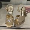 Fashion Liyke Elegant Woman Wedding Party Shoes Sexy Thick Bottom Square Toe Crystal Rhinestone High Heels Platform Sandals Women Silver