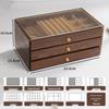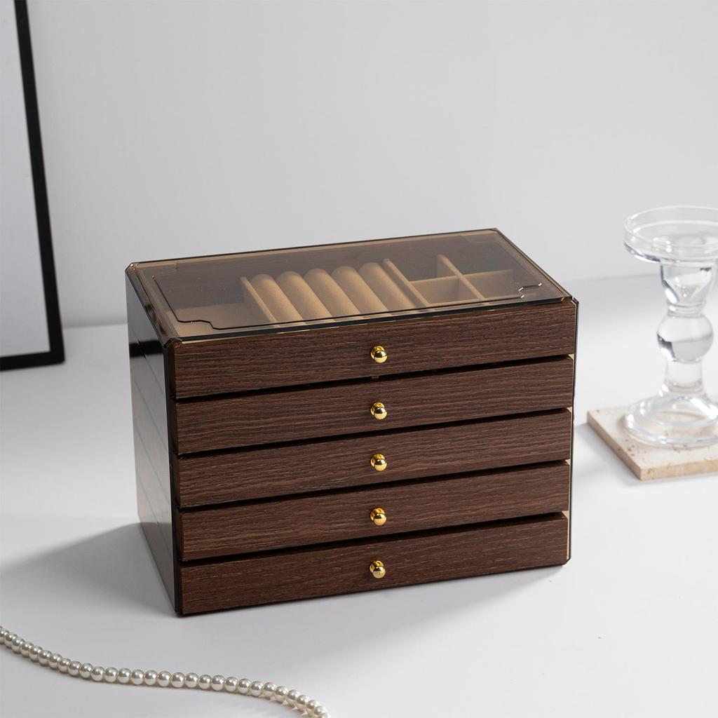 Antique Chinese Walnut Wood Multi-layer Jewelry Box with Drawers for Rings, Earrings, and Necklaces