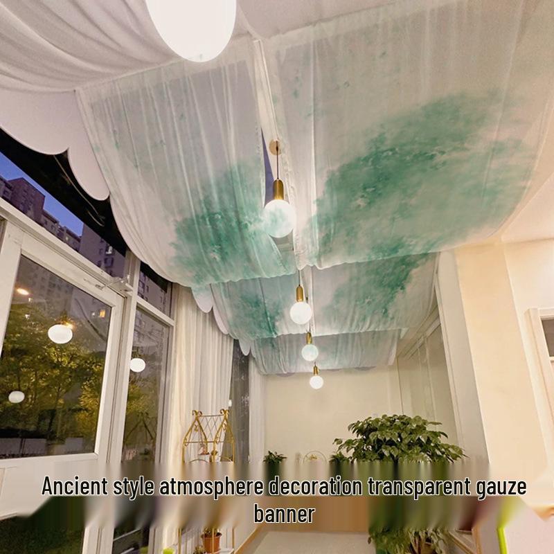 Chinese Ancient-Style Gradient Green Gauze Curtain for Ceiling Decor and Weddings