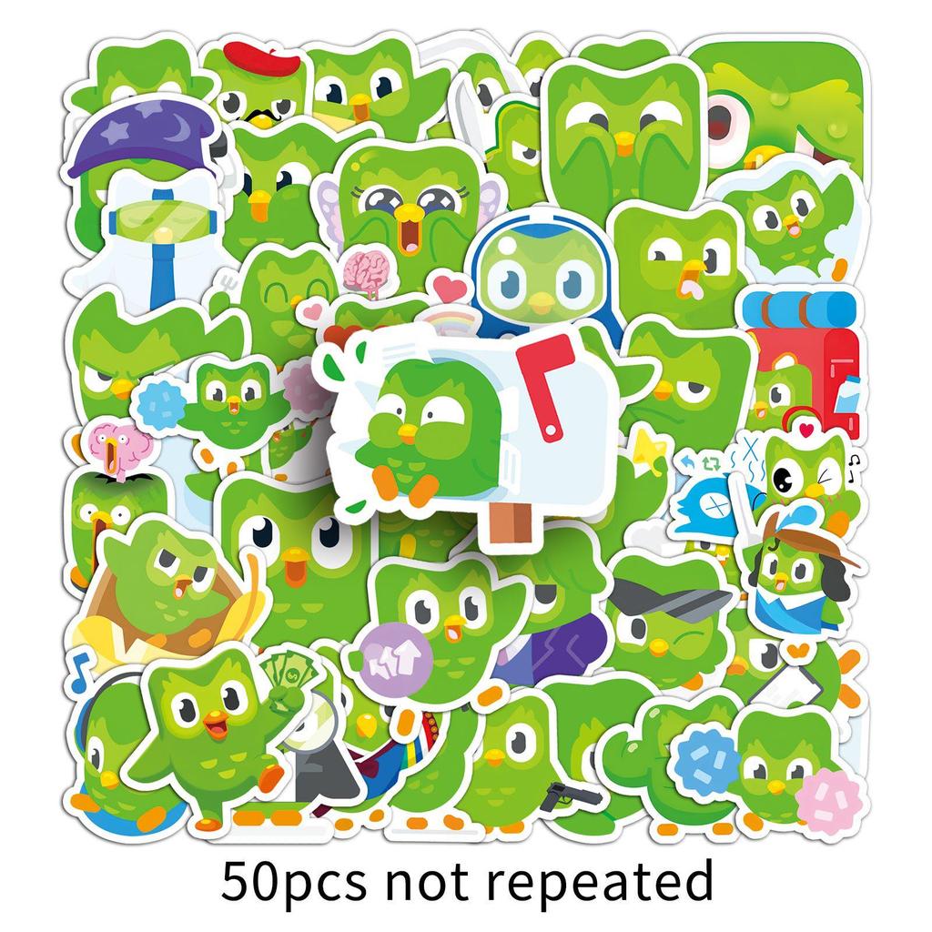 Duolingo Green Owl Cartoon Waterproof Stickers (50-Pack) - Perfect for Headphones, Notebooks, and Phone Cases