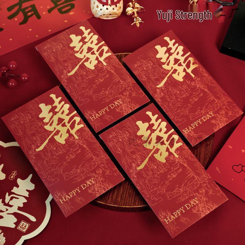 Creative Double Happiness Red Envelopes for Wedding, Bride Pickup, and Door Blocking - Mini and Large Sizes