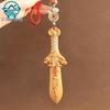Dragon & Tiger Peach Wood Cinnabar Tianshi Sword Pendant with Five Emperor Coins