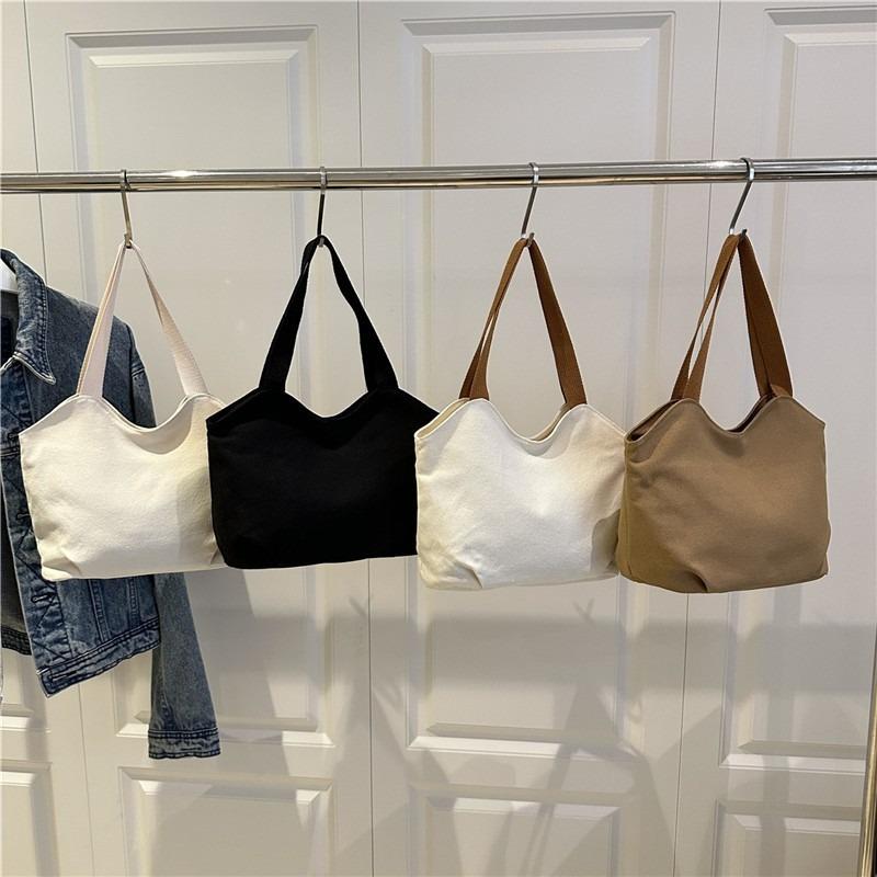 Niche Simple Solid Color Tote Bag Women's New Personalized Fashion Simple Shoulder Bag Literary and Casual Canvas Bag