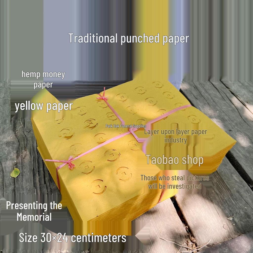 Traditional Copper Coin Punch-Hole Paper for Anniversary Burning - Yellow and White Straw Hemp Paper
