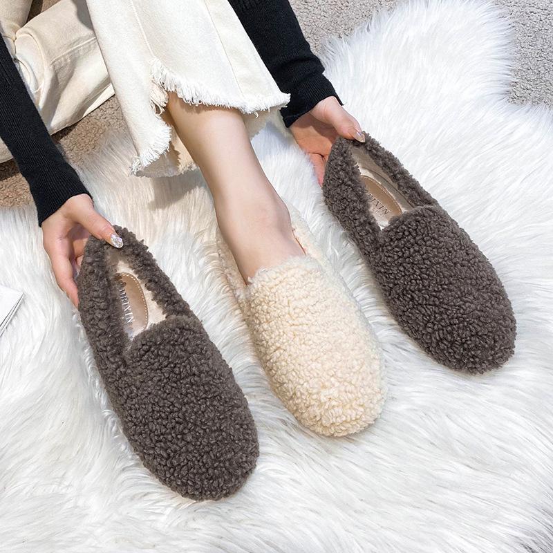 2025 Women's Fuzzy Autumn/Winter Velvet Lambswool Loafers, Large Sizes 41-43.