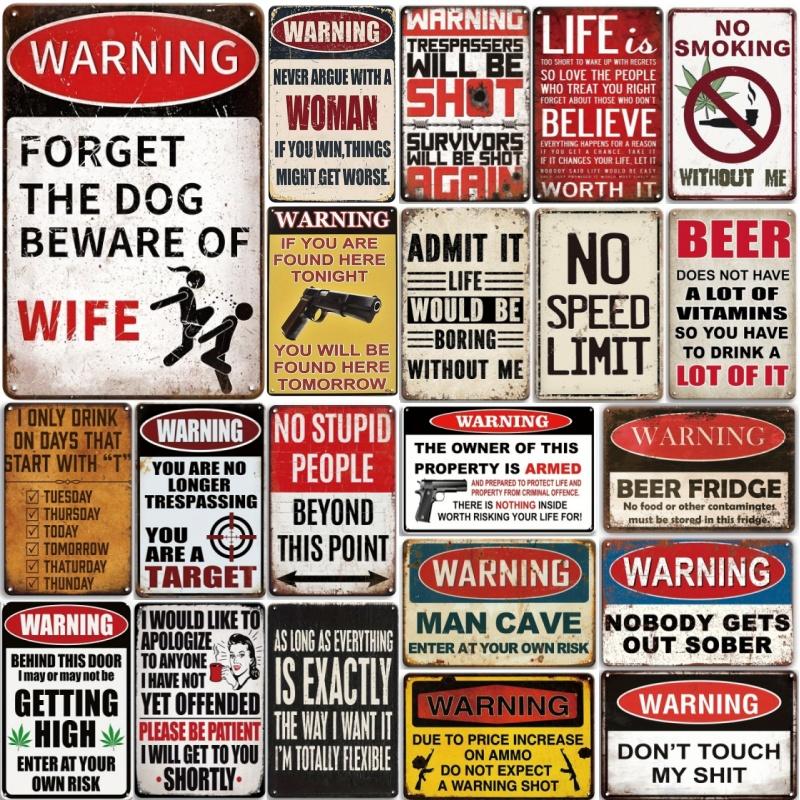Warning Notice Vintage Metal Tin Poster Funny Metal Tin Signs Posters Plate for Garage Bar Cafe Club Home Room Wall Decor
