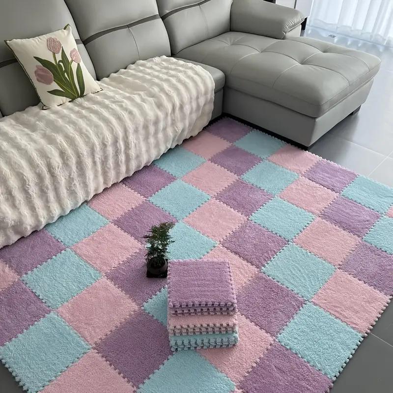 18 Pcs Plush Foam Interlocking Carpet Tiles,Soft Shaggy Fluffy Floor Area Rugs Colorful Floor Protective Mats for Home Kids Room