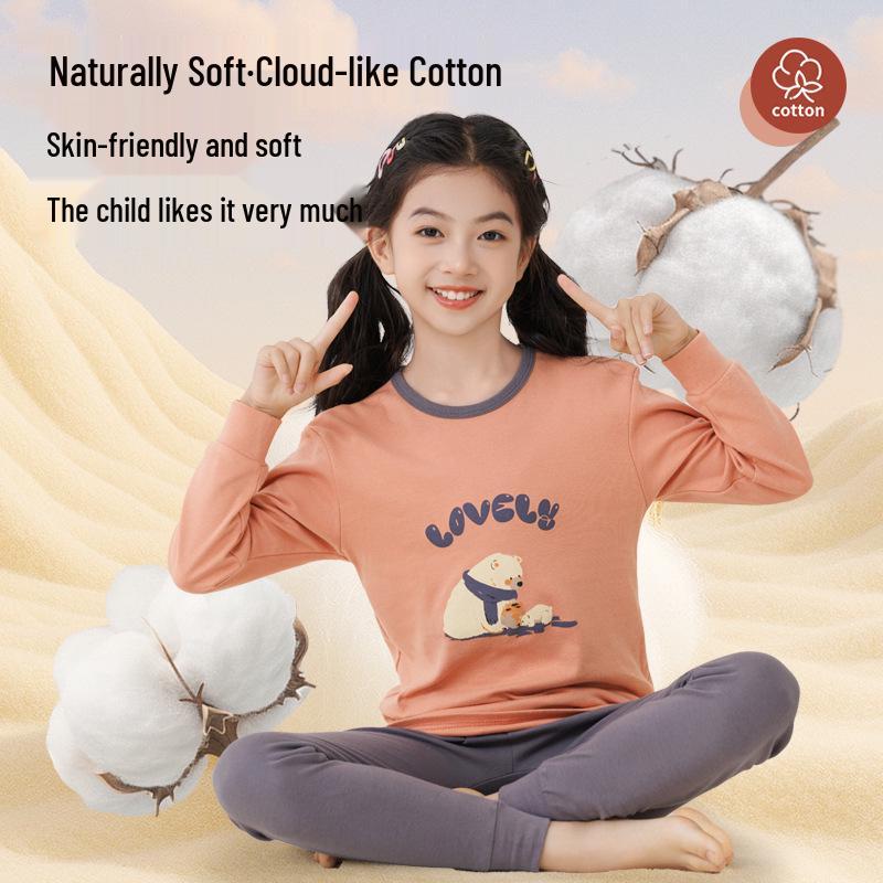 Introducing a premium autumn clothing set designed specifically for boys and girls. This set includes a combination of warm underwear tailored for teens, crafted entirely from high-quality pure cotton. The soft, breathable cotton material ensures comfort and warmth during the cooler months, making it an ideal choice for layering or wearing on its own. Perfect for keeping your young ones cozy and stylish throughout the fall season.