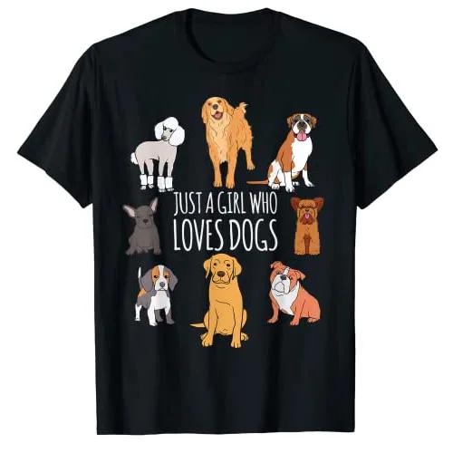 Fun Dog Puppy Lover Themed | Cute Just A Girl Who Loves Dogs T-Shirt Types of Pet-Dogs Graphic Tee Tops Women's Fashion Clothes