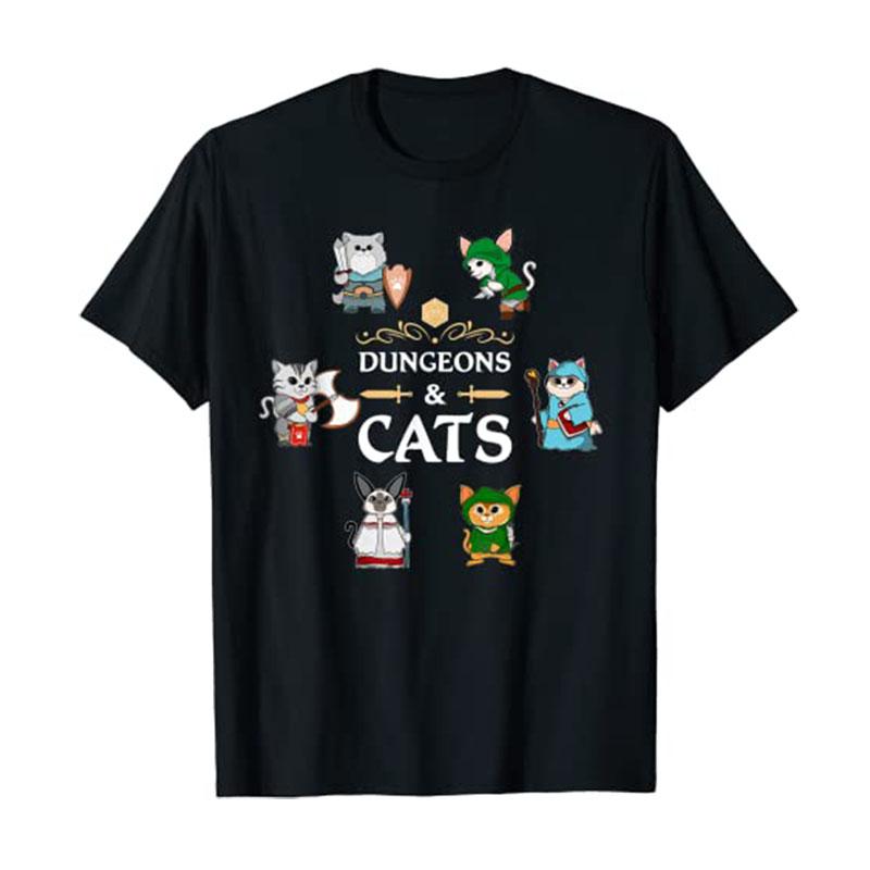 Adventurer Cats RPG D20 Dice RPG Fantasy Roleplaying Gamers T-Shirt for Kids Adults Humor Funny Cat Lover Clothing