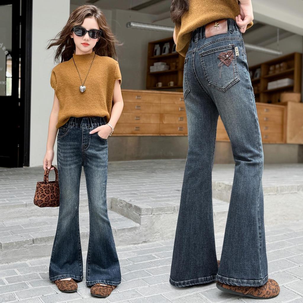 2025 Girls' Stylish Fall Micro-Flared Jeans - Korean Style Children's Pants