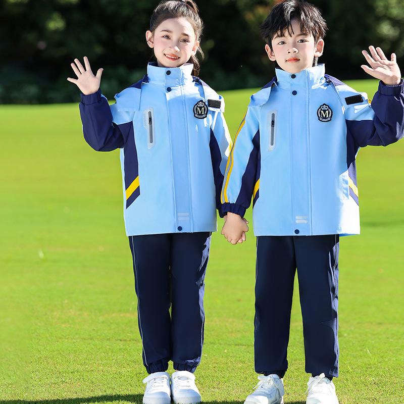 This Elementary School Windbreaker Three-Piece Set is designed specifically for first graders and includes outfits tailored for spring, autumn, and winter climates. Made from high-quality polyester, this windbreaker set offers durability and comfort. It's crafted to provide warmth and protection against the elements, ensuring children stay cozy and dry during their school activities. With a focus on functionality and style, this versatile uniform set makes it easy for young students to stay appropriately dressed throughout the school year.