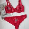 B6011 Summer Ultra-Thin Lace Red Push-Up Bra with Underwire & Rhinestone Detail