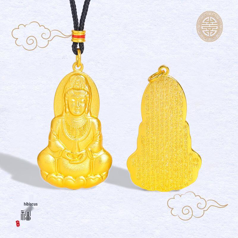 Jin Fuqiang Gold-Plated Sand Guanyin Lotus Pendant with Heart Sutra - Unisex Benmingnian Accessory