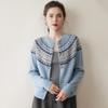 Women's Retro Fair Isle Cashmere Cardigan - Soft Long Sleeve Wool Sweater with Round Neck