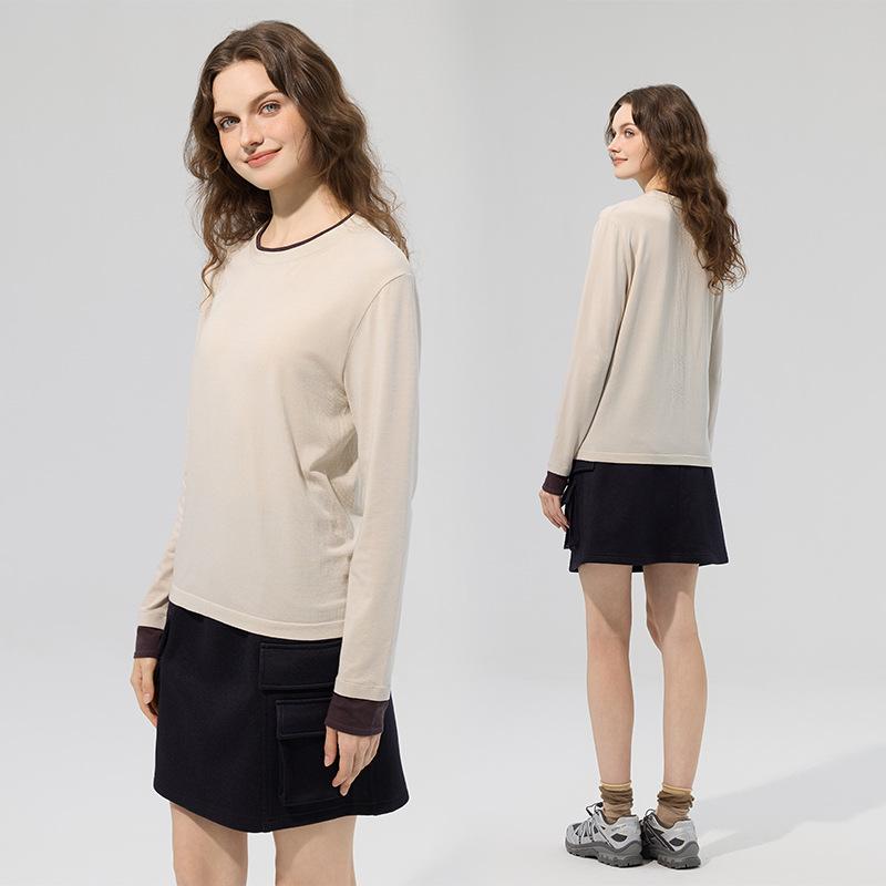 This two-piece sports long sleeve T-shirt is crafted from high-quality Merino wool, offering exceptional comfort and breathability. Designed with a seamless construction and a chic color block style, it features a flattering V-neckline and long sleeves, perfect for athletic activities or casual wear. The solid pattern enhances its versatile appeal, making it a stylish and functional addition to any wardrobe.