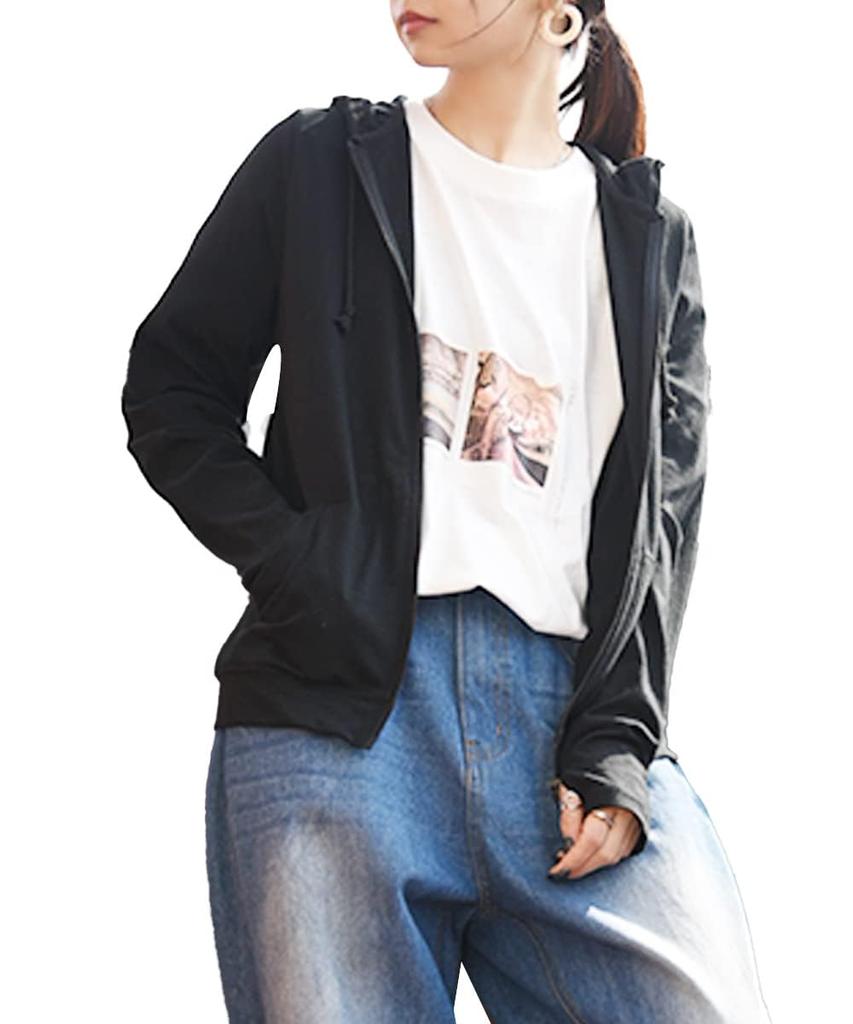 Andit Women's Lightweight Zip-Up Hoodie with UV Protection and Finger Holes, Size L, 51 Black