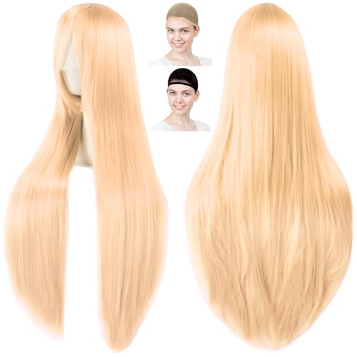 ✅[Instantly Transform into Your Favorite Character] Recommended for cosplaying as characters with long, light gold hair. Become your favorite character with this wig and you're sure to turn heads. ✅ We've pursued high-quality texture, expressive color, and beautiful hair design to create a wig that looks great in photos. Recommended for those who want to take stunning photos that will look great on social media.