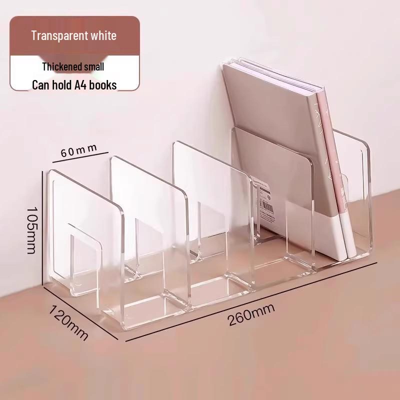 Clear Book Stand & Divider: 4-Grid Desktop File Rack with Clip
