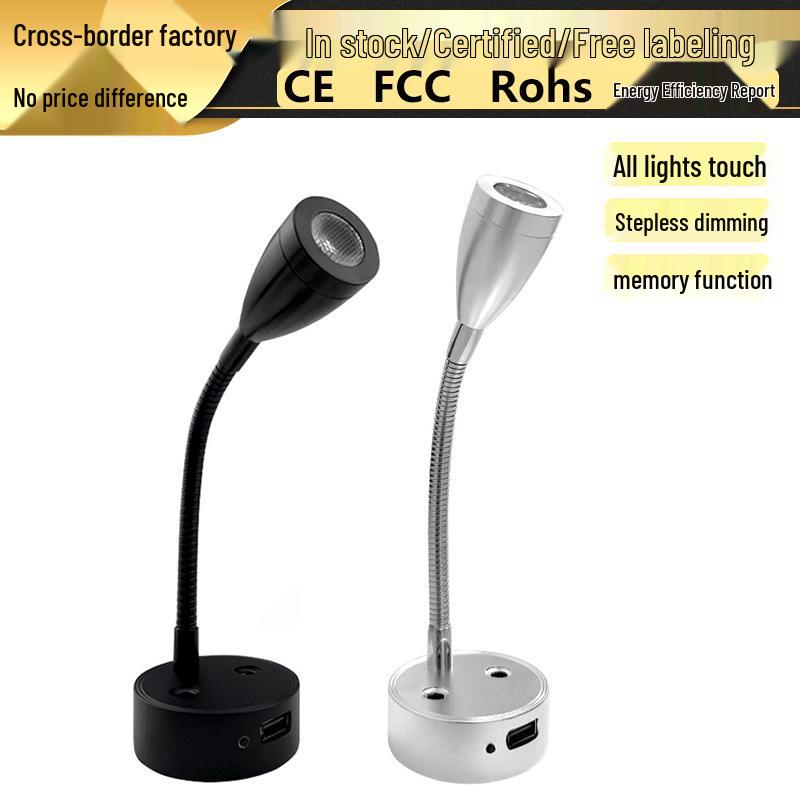 LED Gooseneck Touch Dimmer RV/Boat Reading Light 12V-24V with USB