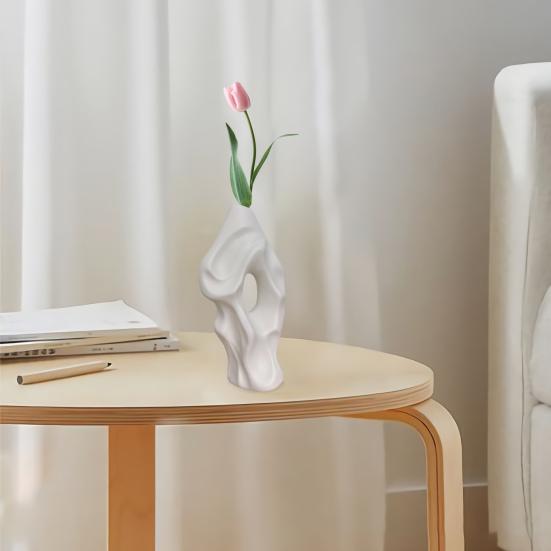Perfect for pairing with green plants, dried flowers, or decorative accents, it effortlessly enhances your interior style. Easy to clean and maintain, this plastic vase combines elegance with practicality for a refined decorative effect.