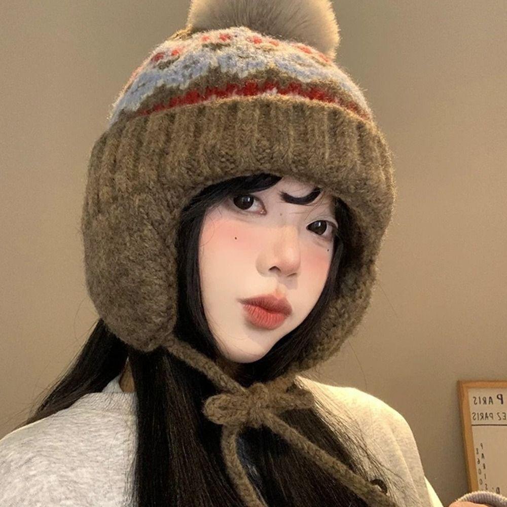 Ear Protection Knitted Cap Warm Beanie Hats Fashion Bomber Hat for Women