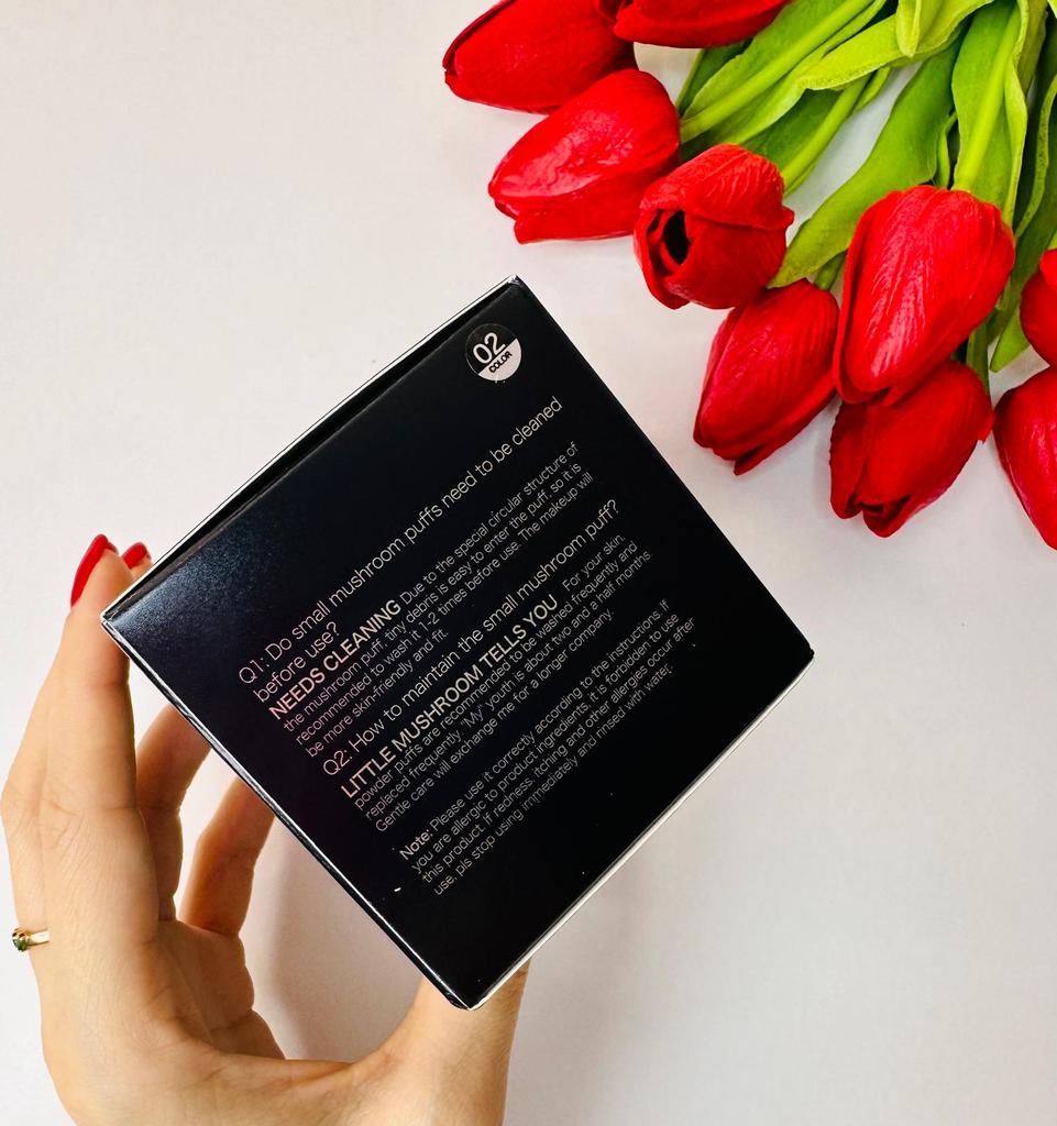 3.Air Cushion BB Cream has a BOMB SMALL MUSHROOM SPONGE that EVENS out the BB CREAM SMOOTHLY on face. This sponge when dipped in water it becomes BIGGER and SOFTER for a more EVEN COVERAGE.
