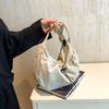 Korean Version of Casual Literary Canvas Armpit Bag Ins Fashion Nylon Handbag Internet Celebrity Drawstring Pleated Shoulder Bag for Women