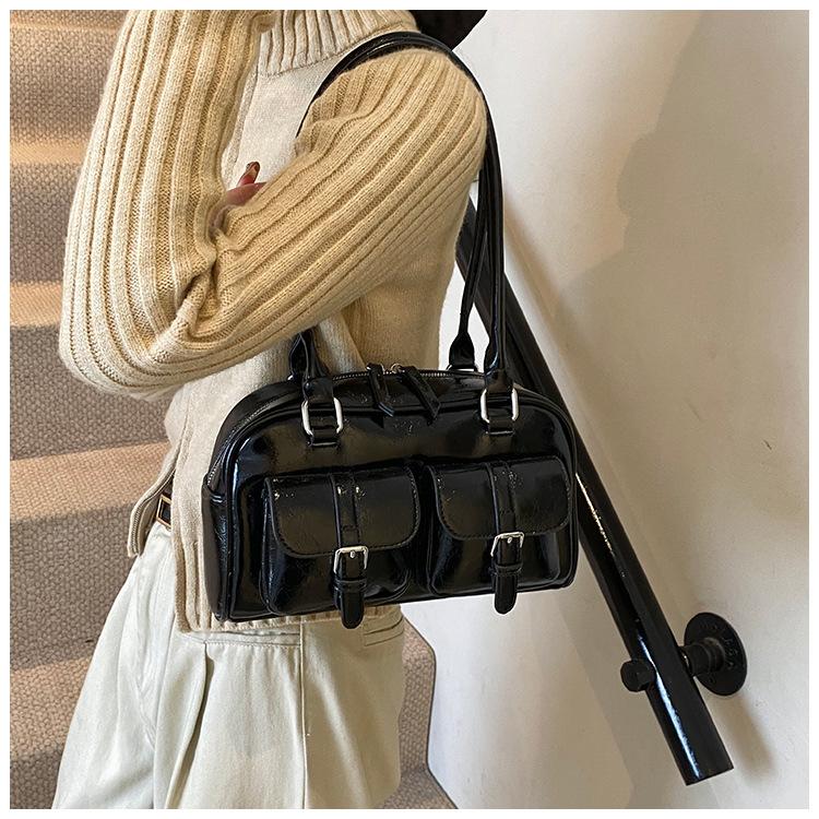 Vintage Boston Oil Wax Leather Pillow Bag Women 2025 New Commuter Bowling Bag Handbag Shoulder Bag