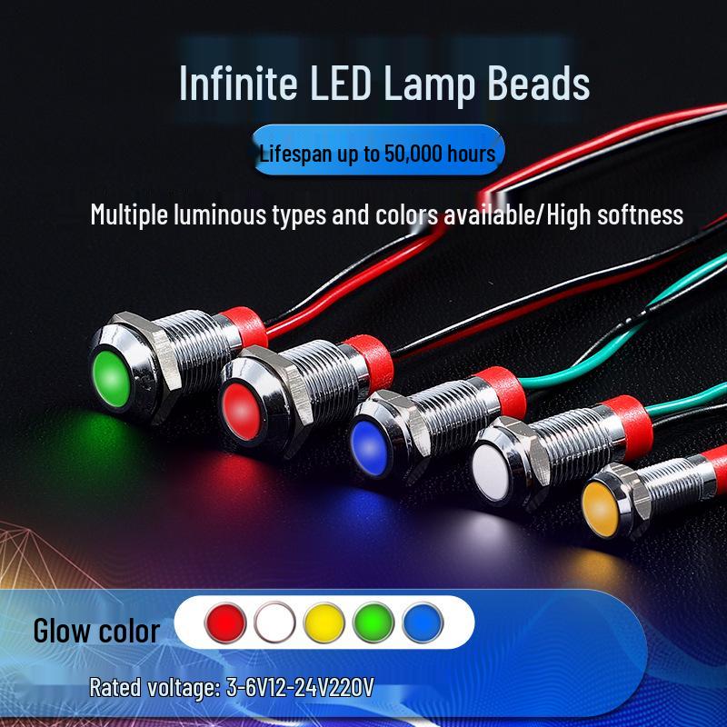 Waterproof LED Power Signal Light - 6/8/10/12mm, 6V/12V/24V Metal Indicator