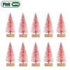 10-100PCS Mini Christmas Bottle Brush Trees Village Ornaments Plastic Trees with Wooden Base Miniature Xmas Tree Decorations Set